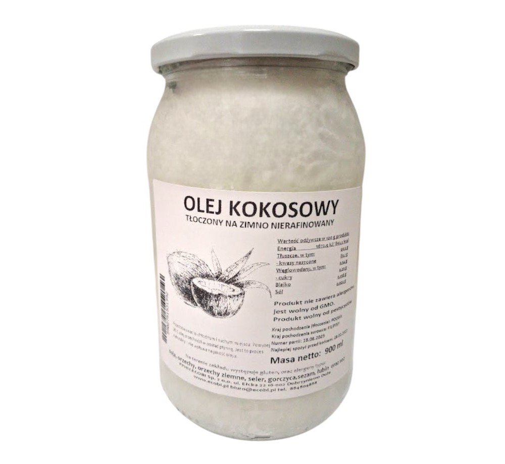 OLEJ KOKOSOWY NIERAFINOWANY 900 ML