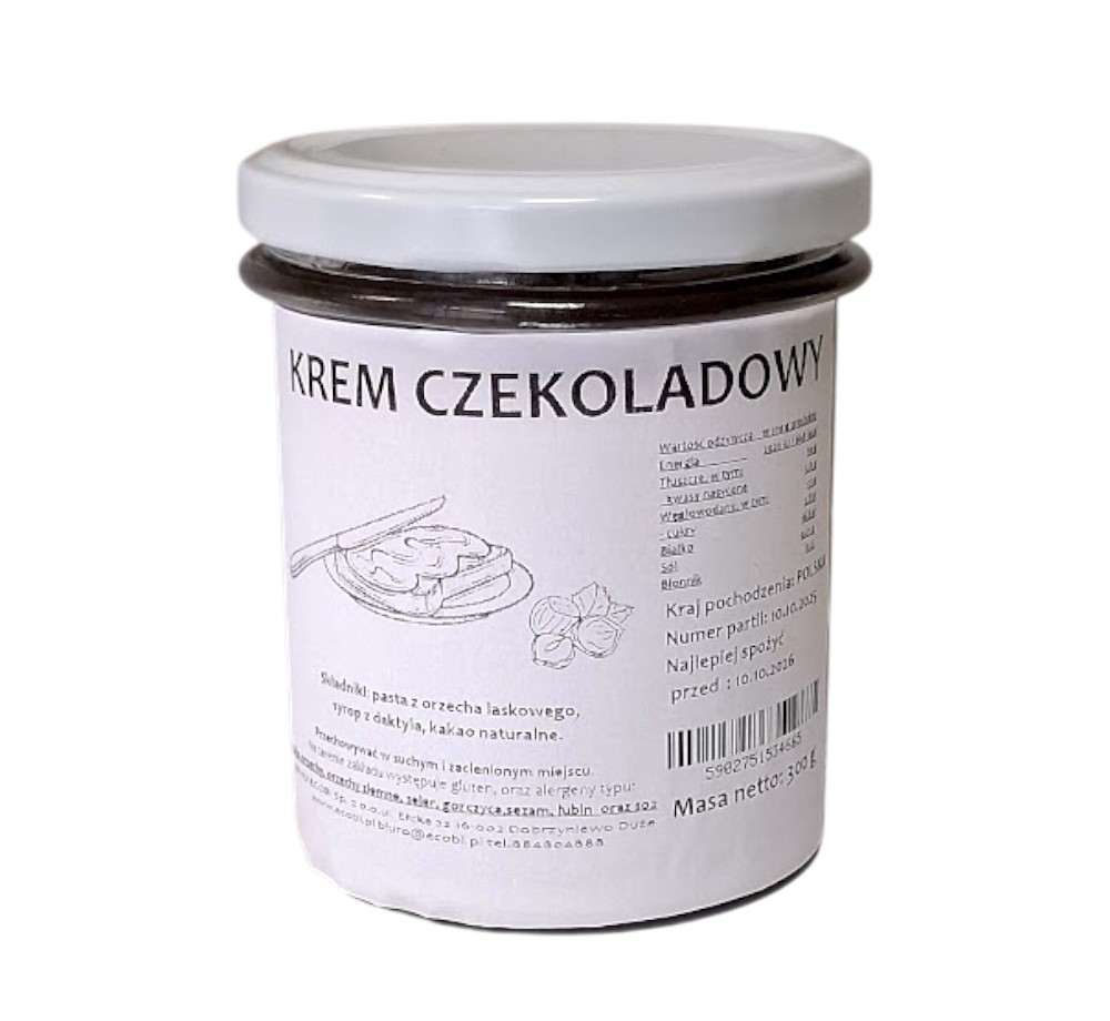 Krem czekoladowe z orzechów laskowych jest naturalne, nie zawiera sztucznych składników.